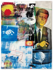 - Eine Serie von Porträts, bei denen die Gesichter der Modelle aus Schablonen und Sprühfarbe bestehen, um eine Mischung aus Realismus und Abstraktion zu schaffen.
