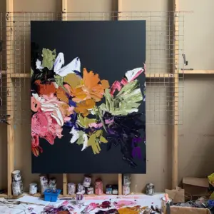Das Artwork „Intro“ von Marc Körner zeigt eine dynamische Komposition aus geometrischen Formen und lebhaften Farben, die sowohl organische als auch digitale Elemente miteinander vereint. Die Verwendung von kräftigen Kontrasten und fließenden Linien schafft eine spannende visuelle Spannung, die den Betrachter fesselt und gleichzeitig ein Gefühl von Bewegung und Rhythmus vermittelt. Die Harmonisierung dieser Elemente reflektiert einen modernen, zeitgenössischen Ansatz, der sowohl minimalistischen als auch expressiven Einflüssen Rechnung trägt.