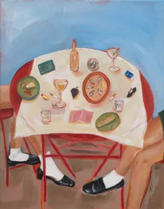 In der Techno-Kultur wird oft Wert auf Einfachheit und Wiederholung gelegt, was zu hypnotischen und meditativen Zuständen führen kann. Ähnlich kann das Kunstwerk durch seine reduzierte Formensprache und die harmonische Farbwahl eine ähnliche Wirkung erzielen, indem es den Betrachter in eine kontemplative Stimmung versetzt und die Wahrnehmung von Raum und Zeit beeinflusst.