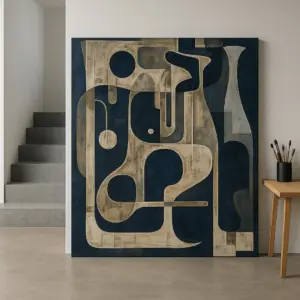 • Ein Plakat für eine fiktive Techno-Veranstaltung, das verschiedene Stile der geometrischen Abstraktion kombiniert.