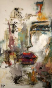 - Ein Porträt, bei dem dicke Farbschichten mit Spachteltechnik aufgetragen werden, um Texturen und Dimensionen zu schaffen.